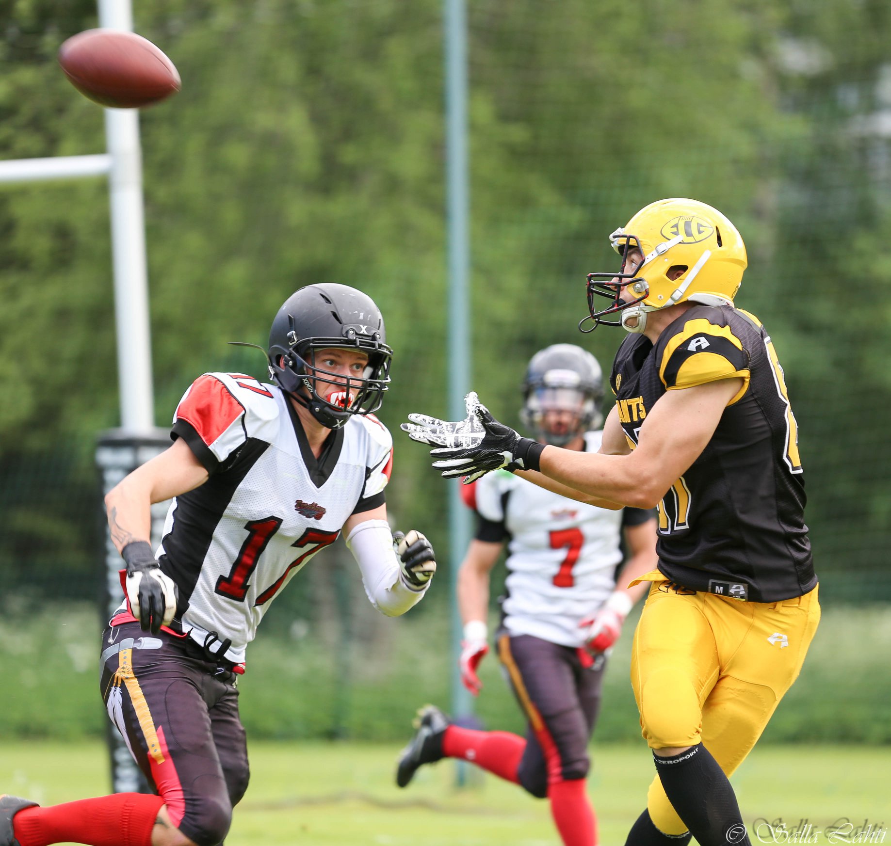 Myllypuron urheilupuistossa pelatun ottelun ECG aloitti erittäin vahvasti kun heti ensimmäisellä joukkueen yrityksellä Jabari Harris heitti 76-jaardisen heiton laitahyökkääjä Sami Nikkiselle, joka tuuletti tämän jälkeen maalia. Joni Aurala upotti lisäpisteen haarukkaan ja näin ECG otti ottelussa ensimmäisellä yrityksellä johdon, jonka sen jälkeen piti ottelun loppuun asti.